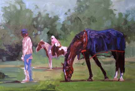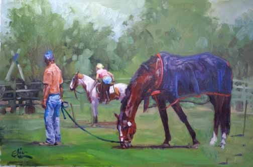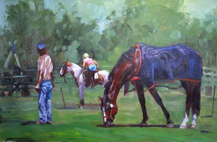 我总是试图让大形状和故事的重要物品放在第一位。马和他的大运动,冷却器,新郎的头,马和骑手。