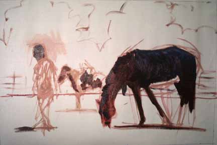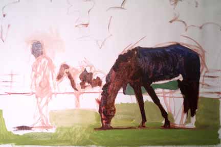 我坚信我的工作不仅仅是对象和他们的故事(马、新郎、骑士),但同样重要的是数量和brushmarks的感觉。“绘画”绘画……