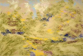 包括使用图表的颜色,天空的蓝色被安置在宽松的形状。我一直只是完成所有领域,使用任何细节。这给第一个潜在的颜色,因为它是用薄,轻,提供了一个基础下柔和的色彩应用没有弄脏,或涂抹。在天空中,我用淡紫色和粉红色。偏暗的树木,深蓝,绿色和紫色。