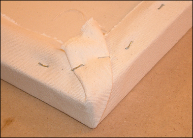 这是折叠仔细查看我的角落。你可以看到一个画布的边缘有一个45度折叠线,和其他边缘没有褶皱。