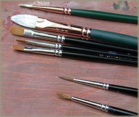 我使用两个银刷1003榛子,三个很便宜Loew-Cornell人工榛子在工艺品店我买,丹尼尔·史密斯# 4紫貂,老史密斯磨损d . # 4作为一个搅拌器。