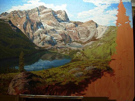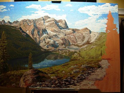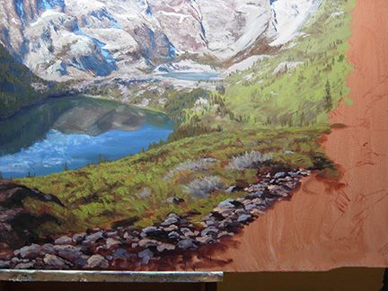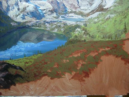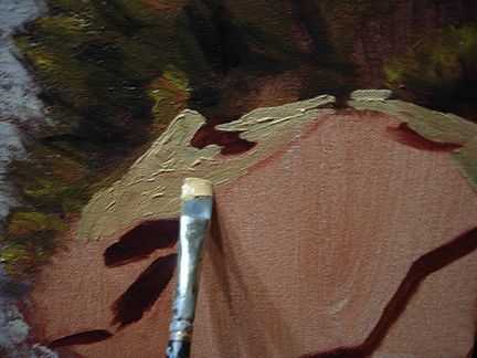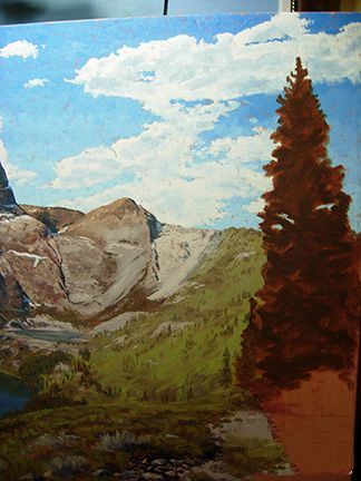 54)。我为我的画底色漆颜色深一点的价值前景灌木允许更多对比一旦我应用灯光…事情前景背景的对比总是比大多数事情…