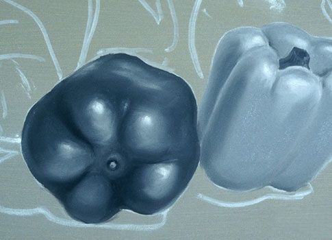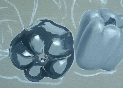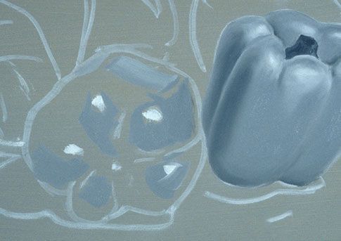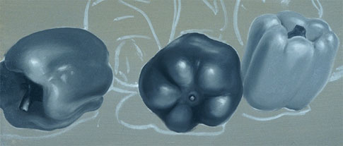 第一次辣椒是最轻的价值。这第二个辣椒是最黑暗的价值。在我们为此更暗的辣椒使用的三个值中光值的第一个中间值相同。再一次突出显示周围放置的光值。