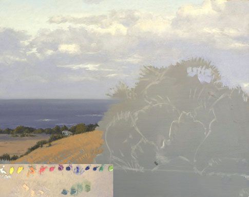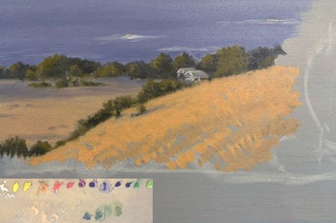 在距离草是在草的颜色相同山丘上,但因为它是更远走它是较不激烈。黄色-桔子的草有其补充,蓝紫色,添加就看出这是远了。