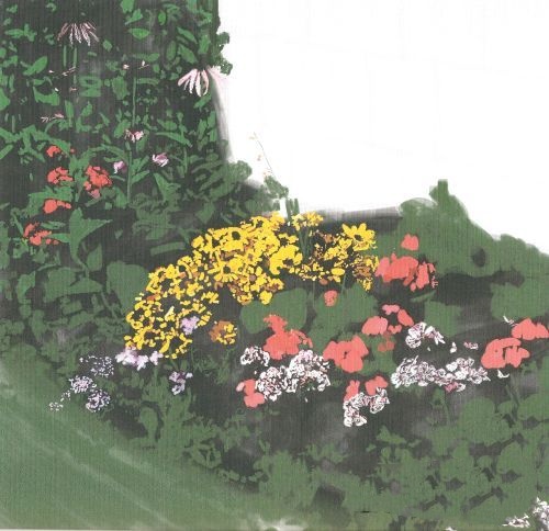 10,回到枝叶和花朵。我全线添加较浅的颜色。打火机绿色灰色和棕色。我在这里和那里添加一些额外的鲜花和使用大量的白加那年夏天的样子。