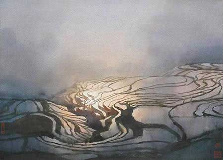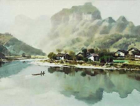 黄铁山,1939年生,湖南省洞口县人,1959年毕业于湖北艺术学院,现任湖南省美协主席,第一届中国美术家协会水彩画艺委会副主任及第二届主任。在水彩画界以描绘湖南乡土风情而著称。他是一位执著从事水彩艺术而独具风格的画家。他不因循守旧,奋发进取,勇于探索,而又深深懂得水彩艺术在中国必须振兴,必须改变那种多年来一直处于其他画种陪衬的地位,因而毅然奋进,默默耕耘,他一步一个脚印,一年一个新的成果。他对自己家乡的热爱近于痴情,对三江四水的迷恋更是情深,他走遍了湖南的峰峦峡谷,他画遍了八百里的洞庭,画遍了江华林区。他1964年创作的《洞庭湖组画》为中国美术馆收藏;1984年创作的《金色伴晚秋》获“第六届全国美展”铜牌奖,为中国美术馆收藏90年创作的《西海岸》获“90中国水彩画大展”二等奖;1991年创作的《潇湘月夜》等6幅作品参加在日本举办的中国水彩名家作品展,两幅作品入选《JCA世界美术年鉴》。