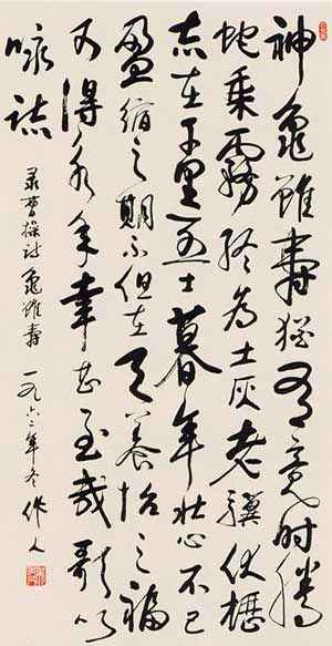 吴作人,1908年11月3日生,1997年逝世,安徽省泾县人。1927年考入上海艺术大学美术系,翌年转学南国艺术学院美术系,师从徐悲鸿,并参加田汉组织的南国社。后随徐悲鸿到南京中央大学艺术系继续学画。1930年 赴法国留学,考入巴黎高等美术学校西蒙教授工作室。后转比利时布鲁塞尔皇家美术学院,进院长白思天画室学习,曾获学院金质奖章和桂冠生荣誉。1935年回国,任教于中央大学艺术系。抗日战争期间曾组织战地写生团到抗战前线写生。1934年至1935年间,又赴康藏高原旅行写生,作有《藏女负水》等。四十年代开始中国画的艺术实践。1942年为中国美术学院研究员。