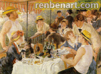 不过这时,雷诺阿纯正的印象派时代离结束之日已经不远了。1880年夏季,他经常去弗尔纳兹大娘在沙东附近安罗瓦西岛上的住所。他在那里所作的《划船者的午餐》是极鲜明地体现和综合其年轻时思想的最后作品。雷诺阿那时已到不惑之年,他需要更新画风。他最担心不过的就是便利,以及使印象派受到颓败威胁的体系思想。雷诺阿和塞尚一样,在几年之前,已通过回到古典传统上去,而重新控制住了自己。他于1881年秋赴意大利,除了在威尼斯短暂逗留之外,还到了罗马,在费尔奈斯宫拉斐尔的壁画前停立良久,然后,又一直走到那不勒斯,并看到庞贝城的绘画。