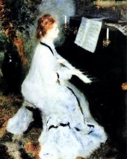 雷诺阿在印象派时期的特点是成功地把感情气氛注人对自然的描写之中,笔下人物温柔的组合和树叶、流水的游戏似乎同样使他陶醉。他从不为轶事作出完全的牺牲,显然比任何新画家都更多地保留主题的重要性,而他的朋友们则特别为风景所吸引。雷诺阿偏爱构图和肖像。确实,他在歌唱了小咖啡馆中平民的欢乐之后,又努力给巴黎上流社会画出几个作为该时代留给我们的最奢华的形象:如《亨利欧家族像》(1876年),《夏尔邦基埃夫人及其女儿像》(1878年),《让娜・萨马里像》(1879年)。