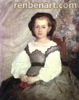 作为风俗画家,雷诺阿似乎为使作品具有分量和表现出他给予作品的感情实质,而不能不画人。如果说一幅塞尚的画是要把一切都带往物体的非人性方面,要以画一个苹果时的宁静去画一幅肖像,那末,雷诺阿的画则似乎恰恰相反,要以对人的观察去给予一切。在他的画上,那怕是一朵花,一个水果,都色彩华丽,美味可口,有生命在呼吸,就象一幅使人可以猜到皮下血液流动的人体一样。塞尚是在观察和推理,而雷诺阿则是观察到了和感受到了。在颜色上,我们也同样可以看到这一对立情况,雷诺阿的主导颜色是红色,即暖色,而塞尚的主导颜色则是兰或绿色,即冷色。