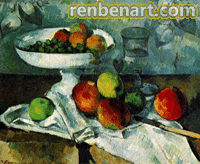 应当承认,塞尚有些画并不这么容易理解。像(图5)那样一幅静物画,从画面上看可能没有多大成功的希望,它显得十分的拙劣!水果盘画得那么笨拙,它的底座甚至还没有放在当中。