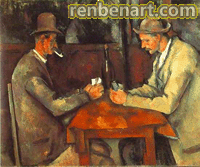 如果说,在1882-1888年期间,塞尚的注意力似乎是集中在风景画上,他力求通过风景画来表现自己的感觉,那么,从1888年以后直到19世纪末,他的最优秀作品是肖像画。其中“玩纸牌者”(图7)是塞尚最出色的一幅构图了。