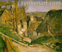 绘于1872-1873年的“缢死者之屋”(图3)给我们展示了塞尚面目一新的作品。他还在使用前些年的浓厚的颜色,不过已经使它从属于中间调子。体积感显示出空间的深度,从而肯定了本身的存在,并且变得更为强烈。换句话说,塞尚充分的揭示了体积和空间的关系,把他从毕沙罗那里学来的东西发挥到了极端,把这些对象看作是一种永恒和普遍的东西,造成这一物质世界的一种坚实性和综合性的感觉,结果也就是使他得到了与毕沙罗完全不同的艺术效果。在塞尚的画上,光还缺乏细致的加工,但这是由于他追求形象的综合性和宏伟感所造成的。