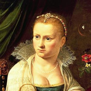 在她 1620 年之前的作品中,皮特斯对光线落在金属物体(硬币、高脚杯、锡盘等)及其反射上尤其着迷。她在许多画作的高脚杯和镀金杯的倒影中描绘了自己,这是荷兰艺术的一个多世纪前的习俗,正如扬·凡·艾克与卡农·范德佩勒(1434-1436 年)的《圣母子》等作品中所见。