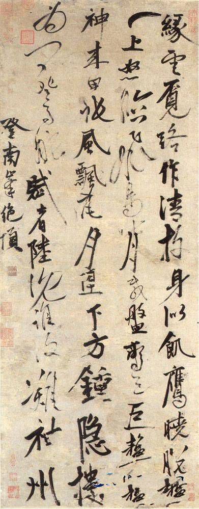 张雨《登南峰绝顶轴》简介:行草书;纸本;纵108.4厘米,横42.6厘米;藏于中国台北故宫博物院。