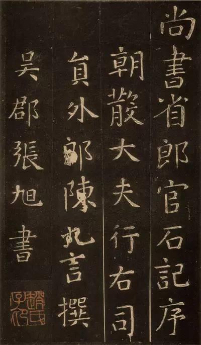 唐·张旭《郎官石柱记》楷书,亦称《郎官厅壁记》,唐陈九言撰文,张旭书。唐开元二十九年(公元741年)立,在陕西西安。