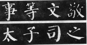 (一)正锋运笔,方圆兼得。颜书甚为古拙,讲究起笔“藏头”,中锋行笔,雄健有力,收笔“护尾”。颜真卿主张“用笔如锥画沙,使其藏锋。画乃沉着”以及“折钗股”、“屋漏痕”等,强调的就是“中锋”和“圆劲有力”。如“折钗”,金钗折如弓,就比其挺直见力度。《勤礼碑》中笔画“化直为曲”,以增强点画的力度。如图一“事”、“等”、“文”、“敬”等字。《勤礼碑》讲究笔画圆劲,如横画收笔重按,钩和捺画先收后放。折笔处有时上耸出方,有时提笔暗转而呈圆肩,或者内方外圆等。总之,《勤礼碑》刚柔之气兼而有之,不愧“庄重沉雄”之作。女口图二“太”、“子”、“司”、“之”等字。