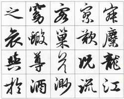 此卷中的三点水较多,但写法上并不强求多变,而大多只是行笔间的细微差异。附图中“酒”、“渺”二字采用上断下连的写法,这也是最常见的处理,只有“流”、“江”、“海”等少烽字作了变化。