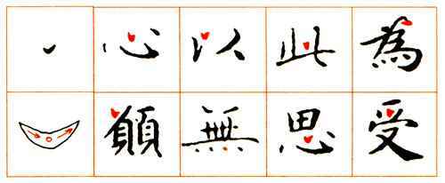 (4)各臻其美。《嵩高灵庙碑》字形中捺画常从各个角度挥出,不拘一格。如附图中的“斋”字捺画柔中有刚,使整个字形翩然而有奇趣。“然”字捺画提笔甩锋,显得神采飞扬。“汉”字末笔点画以长捺出之,从容舒缓,欹侧生姿。“察”字捺画最具意味,下方“示”部第二横左伸右缩,捺画弯曲较长,别有韵味。“欣”和“报”二字,字形本身很端正,捺画较长,且呈上扬之势,遂产生动感,在读帖中可加以体悟。
