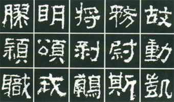 6.戈部。“戈”的长钩多作平波法,如附图中的“职”字。也有作上挑之波的,如“戎”字,但均不打右上点。长钩斜伸,较其他汉碑要收敛些。