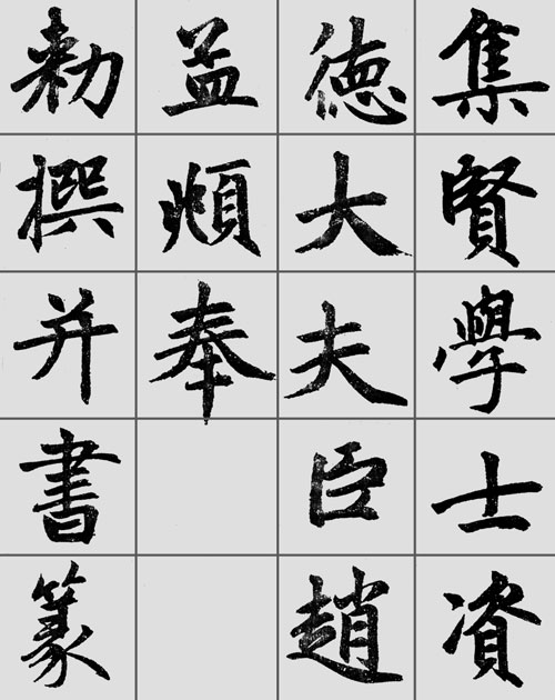 此外,《胆巴碑》的用墨基本是均匀的浓淡相宜的墨法。也许是因为刻碑需要,且为正楷书体,所以不宜显现浓淡枯润、肥瘦老嫩之墨色变化。