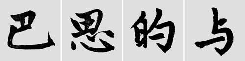 ⑦横折钩。如图二中“的”字的横折钩。先起笔写横画,至转折处稍驻,接着转下,收笔处稍驻,转向左上出锋钩出。这种钩画,有些横画较长,有些较短,有些平折下来,而有些折画带有一定的斜度。横折钩在《胆巴碑》中变化最为丰富,临习时要好好分析。