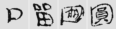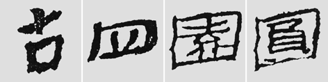 二是趋于方形的转折。如图二中“古”、“四”、“园”、“圆”四字,趋于方形的转折古朴而不乏力量感。