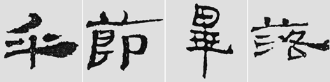 汉简收笔亦是形态各异。如图二中“节”字横画稍顿起笔,行笔中略带波势,收笔渐细。“毕”字长横画收笔提锋向上,呈三角尖状,这是行笔中收笔迅疾自然形成的,临写时不必刻意夸张。再如“落”字“各”部的捺画也是如此。