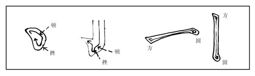 顿笔:按笔较重称为顿笔,较轻称为蹲笔。(见图四)