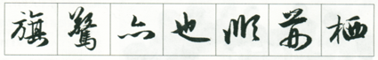 在《前后赤壁赋》中,左右结构的字令其长短相携,高低俯仰,如附图中“旗”、“顾”、“踞”三字;上下结构的字令其宽窄变幻,窈窕多姿,如“惊”、“梦”、“裳”三字。独体字令其点画参差,笔致活脱,如“亦”、“也”、“月”三字。