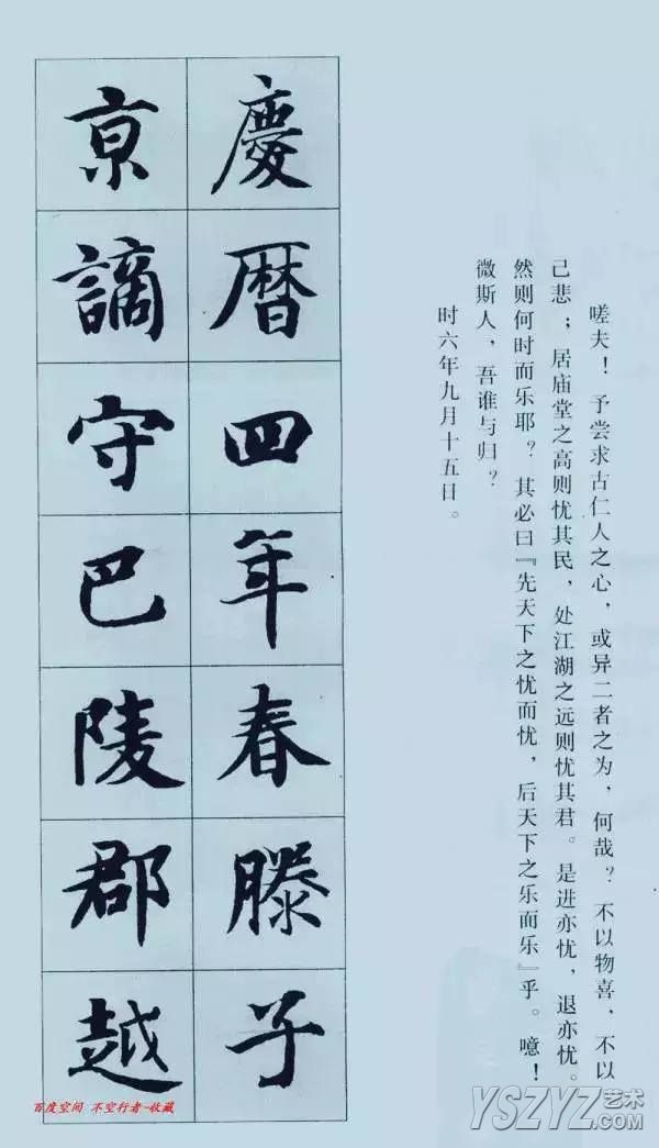 智永《岳阳楼记》书法临摹欣赏 作者: 时间:09-12 浏览: 错误报告 智永《岳阳楼记》 永禅师是陈、隋年间的书法家,而《岳阳楼记》的作者范仲淹则是北宋的文学家。后人通过对智永的书法作品进行摘取、拼合、集字了这一篇真书《岳阳楼记》,使得范仲淹的千年名句“先天下之忧而忧,后天下之乐而乐”穿越四百多年的时光,到了智永禅师笔下。 1/6 下一页 尾页 延伸阅读: 智永《真草干字文》真书临习指南临习智永《千字文》 标签: 上一篇:兰亭序米字格临摹范本 下一篇:文徵明-行草千字文 最新文章推荐 约翰·克里斯蒂安·达尔(Johan Chri 朱利安·杜佩(Julien Dupré)作品-Ha 弗雷德里克·埃德温·丘奇(Frederic 神坂雪佳(Kamisaka Sekka,日本画家) 路易斯-让-弗朗索瓦·拉格尼(Louis- 弗朗索瓦·布歇(François Boucher) 留言与评论(共有 条评论) 验证码: