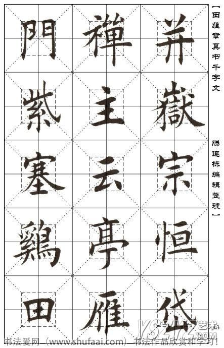 书法《田蕴章楷书千字文》学习字帖 作者: 时间:09-12 浏览: 错误报告 3/4 首页 上一页 下一页 尾页 延伸阅读: 书法字帖欣赏《楷学千字谣》欧阳询书法作品临摹书法碑帖临摹《圣教序》(2)书法碑帖临摹《圣教序》(1)文征明临摹的书法《兰亭序》孙过庭书法字典书法的节奏中几种对比关系周慧老师书法作品邓散木五体书法《正气歌》历代名家各体《寿》字书法集萃 标签: 上一篇:《书谱》真草对照本(下) 下一篇:楷书结构28法解析 最新文章推荐 约翰·克里斯蒂安·达尔(Johan Chri 朱利安·杜佩(Julien Dupré)作品-Ha 弗雷德里克·埃德温·丘奇(Frederic 神坂雪佳(Kamisaka Sekka,日本画家) 路易斯-让-弗朗索瓦·拉格尼(Louis- 弗朗索瓦·布歇(François Boucher) 留言与评论(共有 条评论) 验证码:
