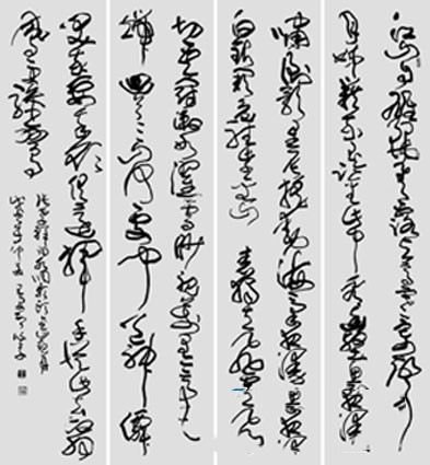 友智先生的草书作品,既有小幅如条幅、斗方、手札,也有鸿篇巨制,如多条屏、长卷等。作者能自由地把握各种章法和艺术形式,这是艺术成熟的表现。但相比来讲,我更欣赏他的鸿篇巨制。据说他用的是长锋羊毫,写大字更容易表现出气势,线条也容易出现变幻莫测的奇妙效果,加之墨色、水分的合理运用,苍茫而水墨淋漓的草书精品会在不经意当中被创造出来。一件好作品在当代的出现,是作者对传统的全面继承、对时代精神的准确把握和强烈的个性三方面要素自然融会贯通的结果。