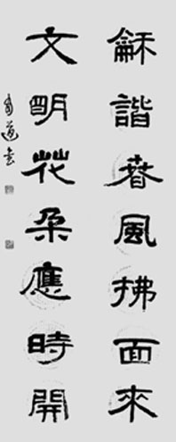 张有道的古道热肠,如涌动着无限灵气的涓涓细流,融进了日之热情、月之含蓄、山之厚重、风之轻盈,与“大地无言,草木自春”的真性情汇于毫端,慨然恣肆的挥洒过后,但见满纸烟云。50年来,张有道临颜真卿、欧阳询,学“二王”,临池有静力,法古书天真。他长于行草,楷、隶亦工,能博采诸家,独成一格。其笔墨远离邪浊,超绝平庸;结字气格雅正,无时下的烟火气;布局严谨而不呆板、灵动而不杂乱,犹如水落石出,涤净浮尘,秀色自现,风骨独标。他的作品,承传统于字里行间,出新意于法度之外,有松柏古朴之风,兼梅竹灵秀之韵,书禅合一,意味隽永。2006年3月和2007年4月,“张有道书法作品展”分别在京、晋举办,好评如潮。中国书法家协会顾问钟明善先生赞其“读书得真趣,怀古生远思”,对其师承传统、推陈出新的艺术之路和严谨而不失轻灵、厚重而力避呆板、气象万千、独树一帜的创作风格给予了充分肯定。廖静文女士撰文称:“山西夏县张有道同志,我的印象里草书写得很好……有道的书法好,首先是因为把握了大气象,同时也归功于多年来下的大工夫。”