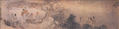 仕女画以女性为主要描绘对象,是人物画中的一项重要表现内容。多数学者认为,中国最早的仕女图当数战国楚墓出土的《龙凤人物图》(旧称《夔凤人物图》)。但也有学者认为,这种属于丧葬用品的反映妇女生活的帛画,还不能称为真正的“仕女图”。通常来讲,魏晋南北朝是仕女画发展的初期阶段。现存最早的卷轴仕女画是东晋顾恺之的《洛神赋图》。自唐朝至明朝,中国绘画史上有许多仕女题材的佳作,如张萱的《虢国夫人游春图》、周 的《挥扇仕女图》、顾闳中的《韩熙载夜宴图》、陈居中的《文姬归汉图》、唐寅的《孟蜀宫妓图》……这些作品的共同特点是秀美富丽、艳而不俗。到清代,仕女画的发展达到了鼎盛。其地位也在山水画、花鸟画之上,正如清代高崇瑞在《松下清斋集》中所言:“天下名山胜水、奇花异鸟,唯美人一身兼之。虽使荆、关泼墨,崔、艾挥毫,不若仕女之集大成也。”仕女画几乎成为中国画中独立的一类。清代仕女画中的女性大多“倚风娇无力”,没有了唐、宋时仕女健康舒展的风貌。对此,我们可以从费丹旭的这幅《忏绮图》(见图)中窥其一斑。