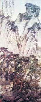 王蒙山水画中有一部分为继承黄公望浅绛技法的作品,《春山读书图》是其中之一。画中书亭茅屋背靠青山,头盖松荫,座落于台阁青溪之上。这种幽静自然的理想环境是文人隐士们向往的境界。