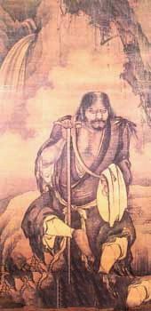 图中李仙为八仙中的铁拐李。颜辉将李仙形象画得既魁梧又凶恶,褴褛的衣衫以浓墨渲染,增加了人物形象的凝重感。这种表现方式与当时的文人画是格格不入的,但却为后世浙派名师吴伟所推崇。