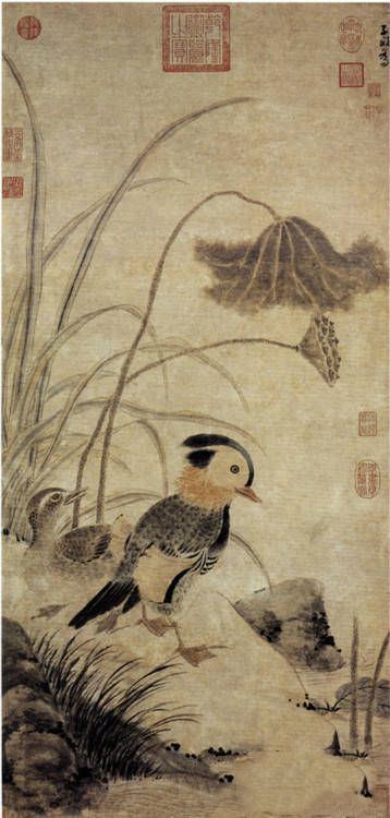 元 张中 荷花鸳鸯图(枯荷 图)台北故宫藏