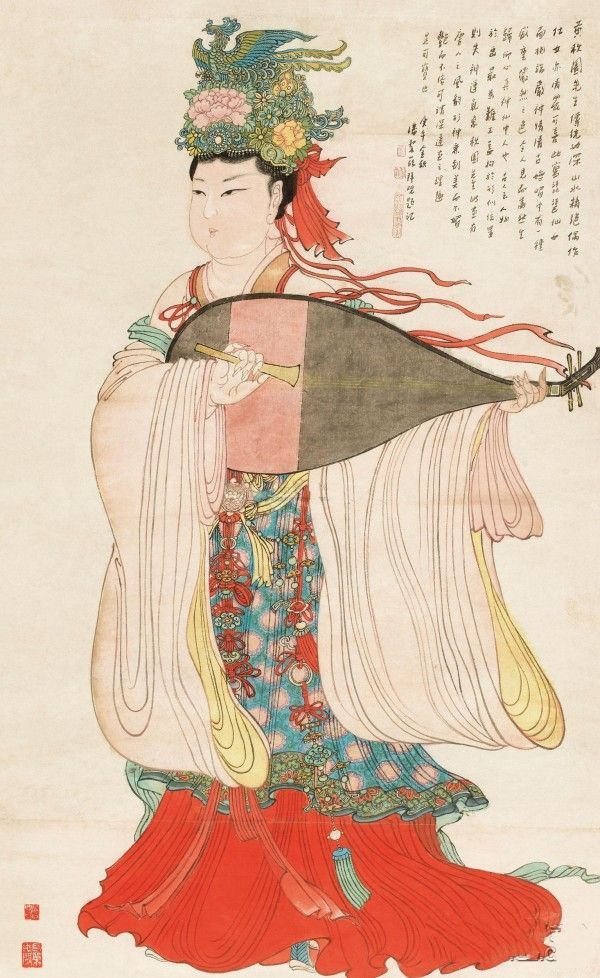 黄秋园《敦煌仕女图》作品介绍:纸本,立轴;纵104厘米,横64厘米;藏于不详;钤印:秋园之画、长留天地间。