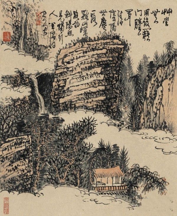 黄秋园《夕阳照见独行吟》作品介绍:纸本,立轴,设色;纵65厘米,横52厘米;藏于不详;题识:草堂无用设篱门,剩有清阴隔世尘。一路溪山归路永,斜阳照见独行人。半个僧画;钤印:半个僧、长留天地间;藏印:流泉山房珍藏近现代书画印记。