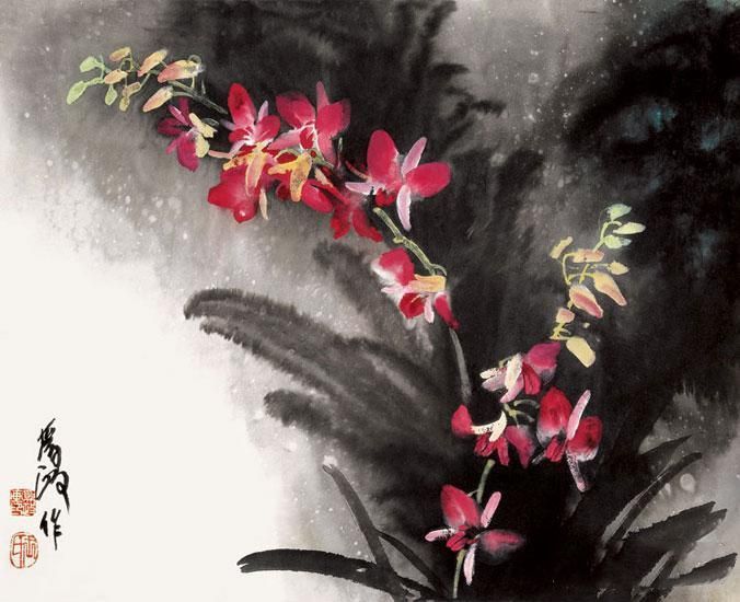王为政《胡姬花》作品介绍:纸本;纵48厘米,横60厘米;作于1997年;藏于不详。