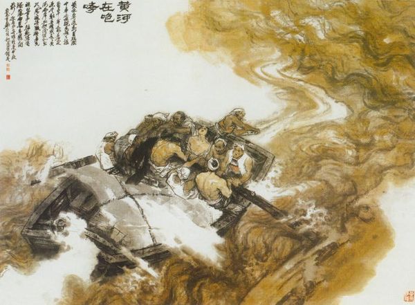杨力舟《黄河在咆哮》作品介绍:纸本,设色;纵180厘米,横230厘米 ;作于1979年;藏于中国美术馆。