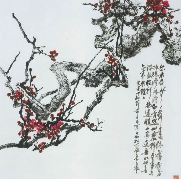 于希宁《冰魂劲骨》:于希宁先生生于山东一个书香世家,他原名桂义,字希宁,及长以字行。别署平寿外史,鲁根、管龛、梅痴,斋号劲松寒梅之居。擅长国画,此作为他的传世之作,作品章法奇俏,意境超脱,梅干用笔苍劲、奔放,挥洒自如,体现出了不同寻常的风骨品性。梅花以曙红意笔点出,花之向背聚散,色之浓淡深浅,相互衬托,层次井然有序。画家借物抒情,寓物于情,以纵横雄健、畅达奔放之气势表现了在冰天雪地的梅花倔强、坚贞、高洁的傲然之气。
