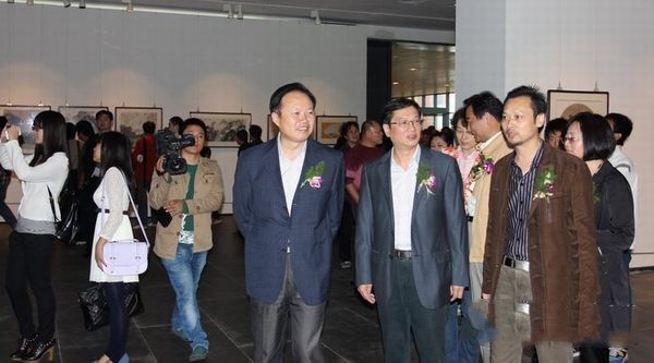 主席台上的各位领导和嘉宾进入展厅参观周广中画展