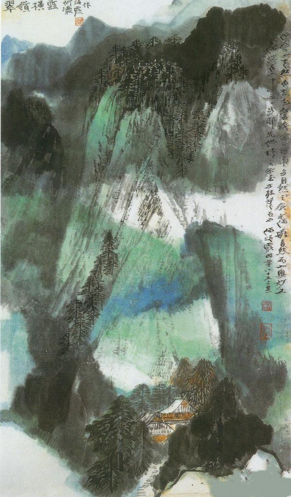 【翠岭横云】作品介绍:1990年,纸本设色,96cmx 56.8cm。中国美术馆藏。