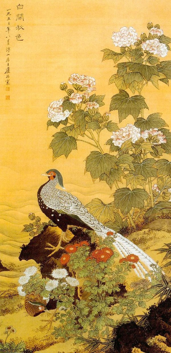 【白鹇秋色】作品介绍:1953年,纸本,设色,130cmx 66cm。广州美术馆藏。