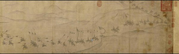 陈及之的《便桥会盟图》作品 作者: 时间:09-12 浏览: 错误报告 陈及之《便桥会盟图》(局部) 陈及之《便桥会盟图》作品介绍: 纸本,白描;纵36厘米,横774厘米;作于不详;清宫旧藏。 陈及之《便桥会盟图》:该图旧作辽画,实误。款署“祜申仲春中浣富沙竹坡 及之作”,据考,“