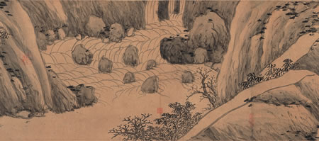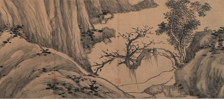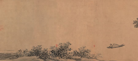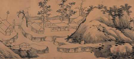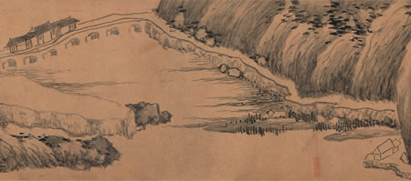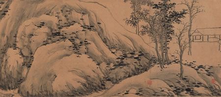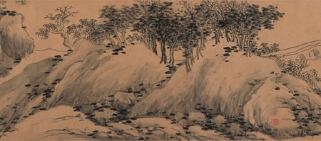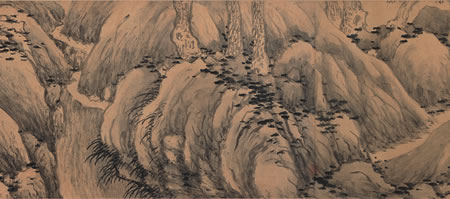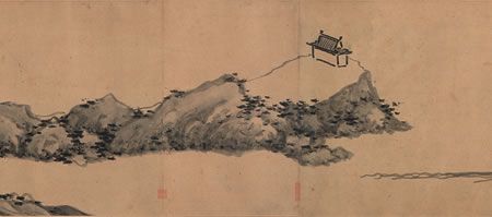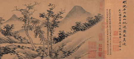 沈周《西山纪游图》作品介绍:纸本,水墨,长卷;纵28.6厘米,横867.5厘米;作于不详;藏于上海博物馆。