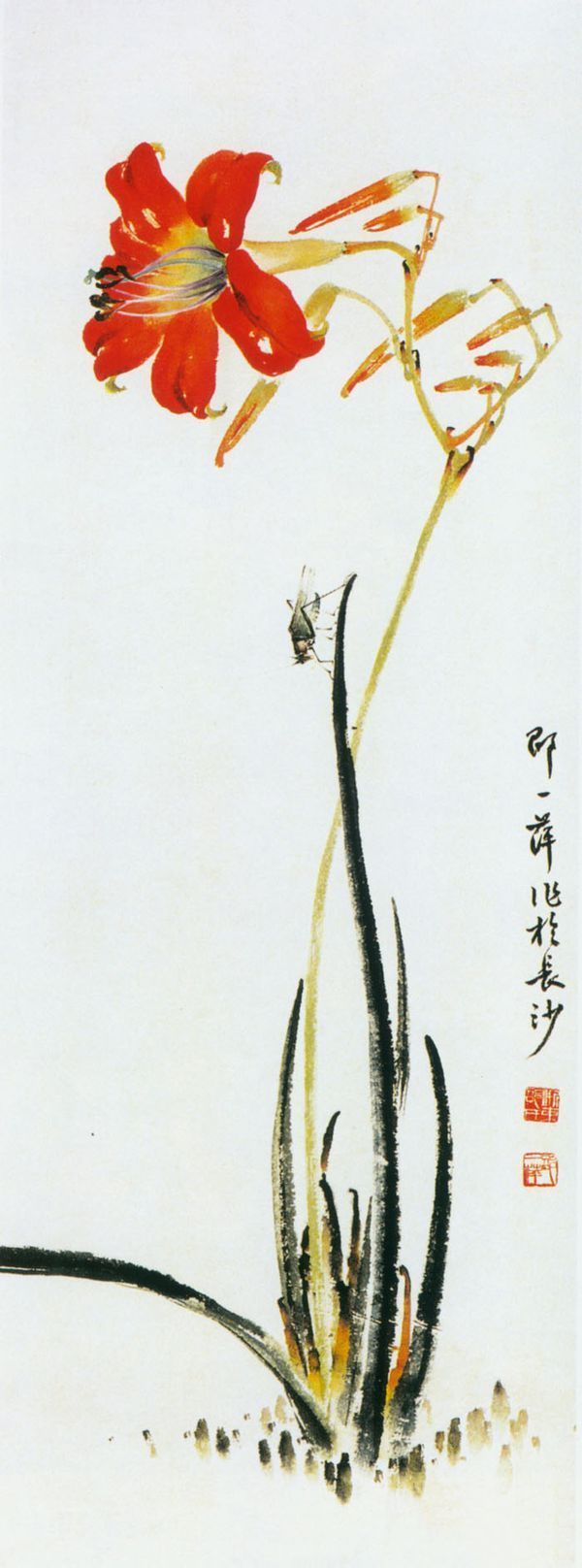 邵一萍《萱花》作品介绍:纸本,设色;纵104厘米,横38厘米;作于50年代;藏于中国美术馆。