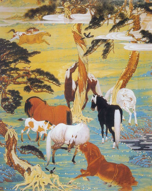 李际科《九骏图》作品介绍:绢本,设色;纵85厘米,横66厘米;作于不祥;藏于画家家属。